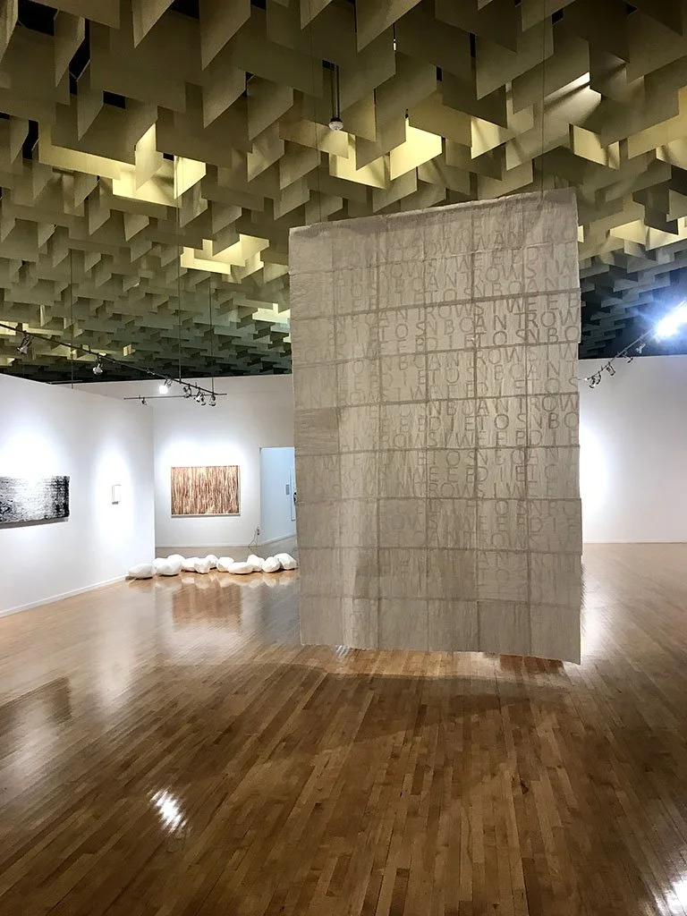 I Want To See, 2017, Bible paper, nylon thread, acrylic paint, acrylic medium, 144” x 168” x 1”