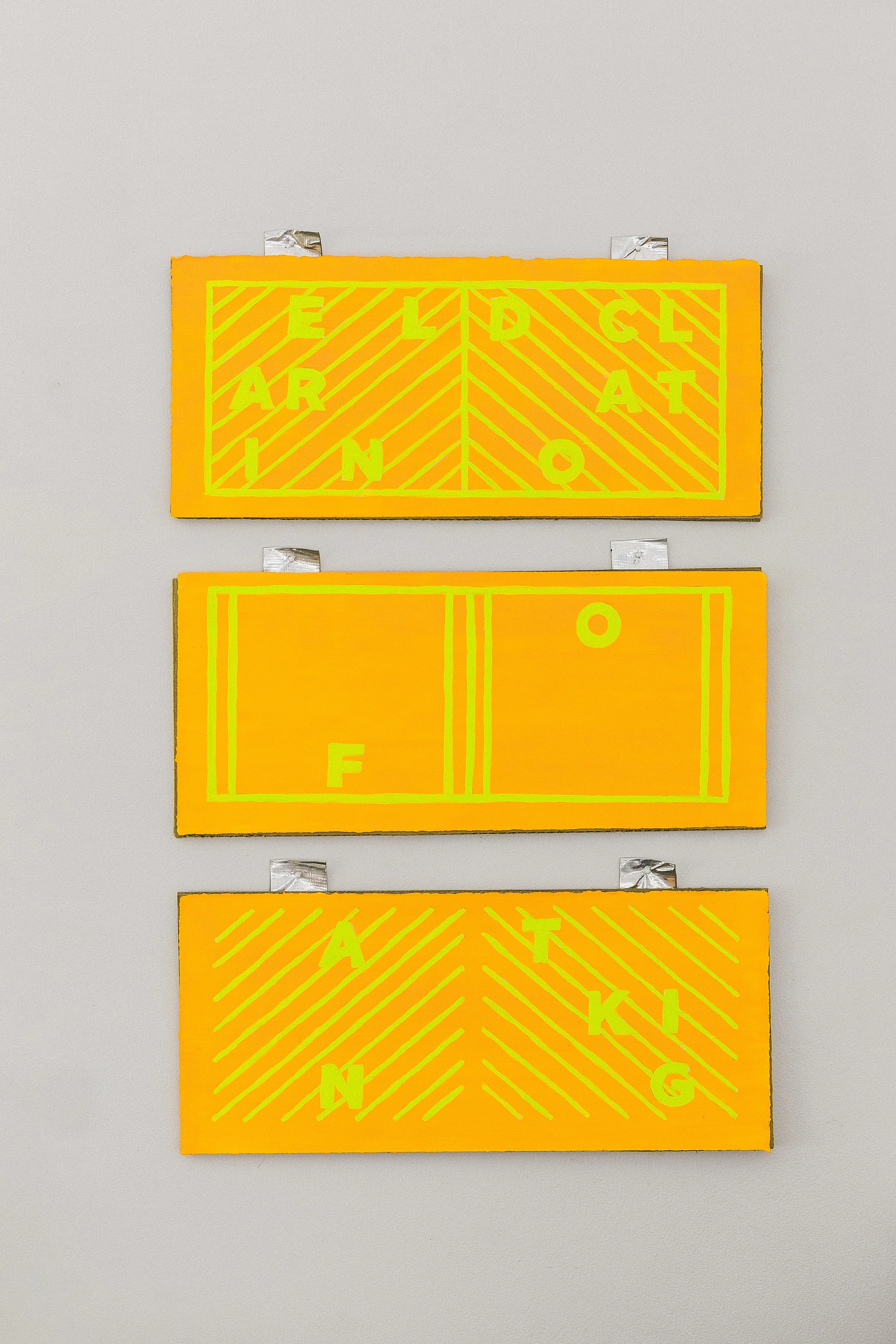 Declaration Of Taking, 2019, Cardboard, BFK rives paper, Acrylic Paint, Duct Tape, 18” x 24”